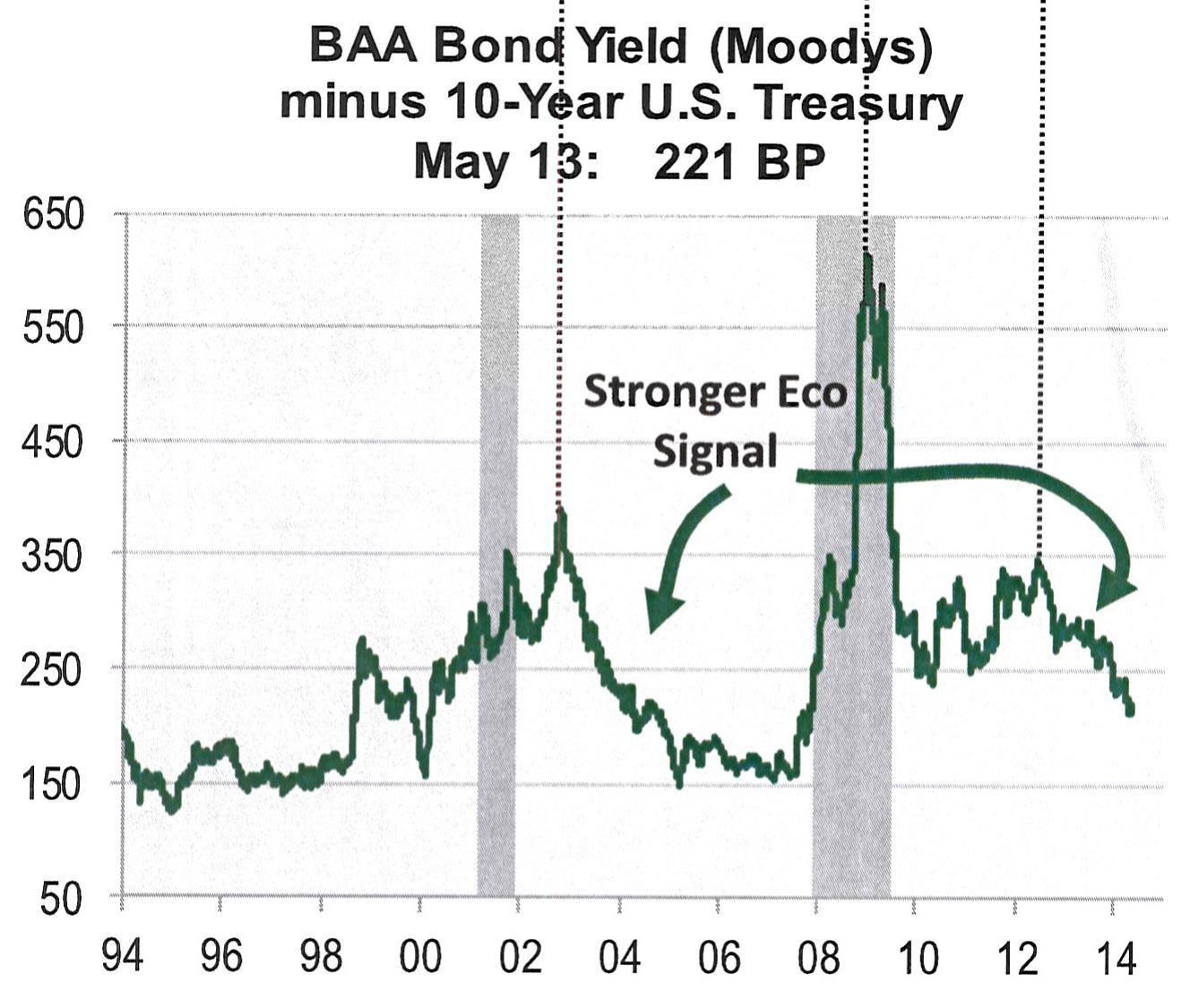We’re not absolutely convinced that the bounceback we’re seeing in some economic indicators is much more than a snapback from depressed Q1 weather related demand. If that is indeed the case, then interest rates could continue to remain lower for an extended period of time. While our economy may be expanding, a new normal rate of growth for an extended period of time following a severe credit induced recession would not be unprecedented, but in fact, likely. As we said before, slower growth and lower inflation/interest rates are among the very best economic environments for stocks. Companies that sustainably grow earnings faster than most not only benefit from higher levels of future earnings, but also the higher multiples placed by the market on a given dollar of earnings.