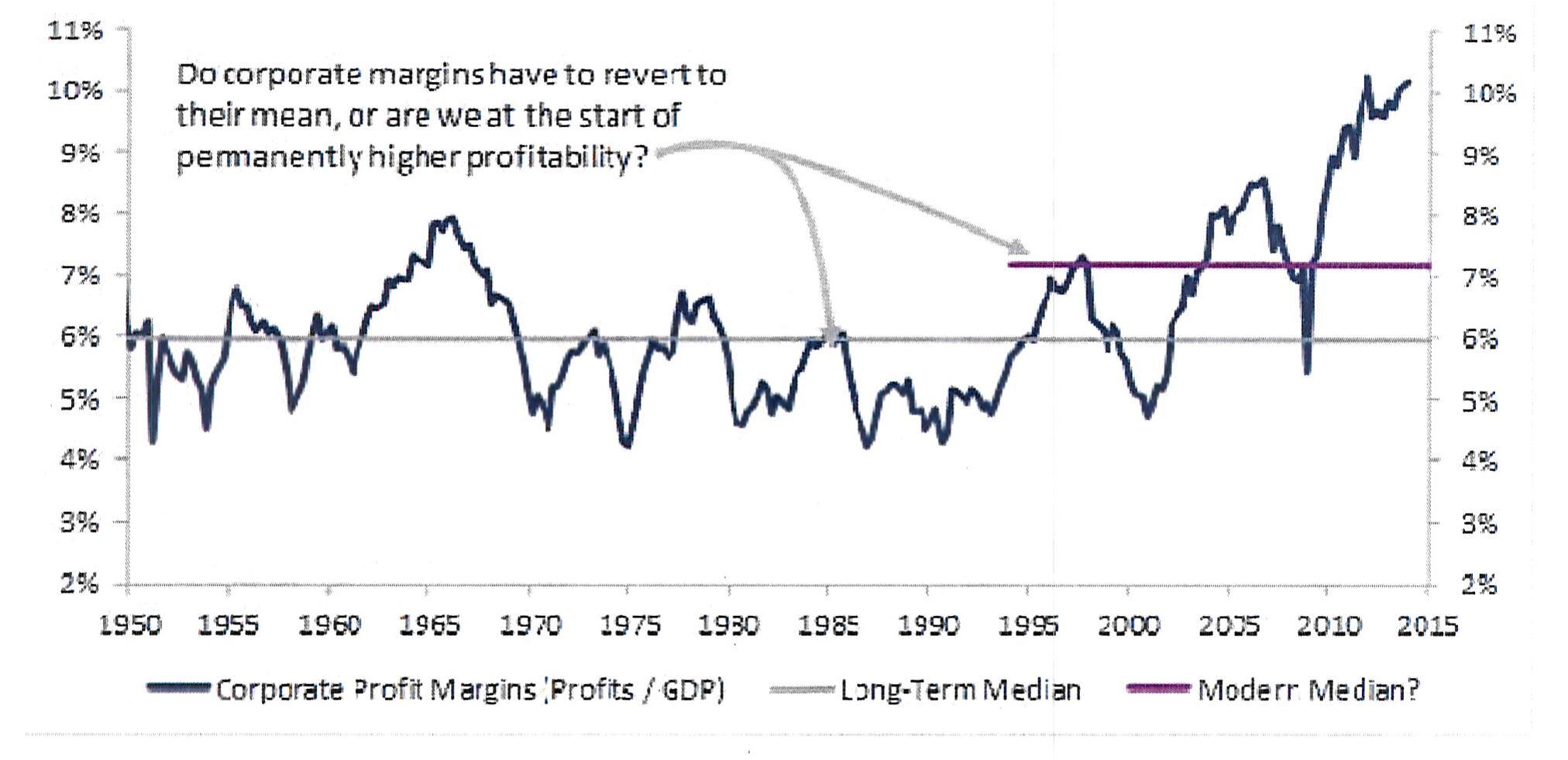 As the following chart from ISI Group shows, corporate profitability is clearly in new territory, causing some to expect an impending reversion to the mean, a bear case that gets more press given the bond market conundrum. But rising corporate margins have been trending higher since 1995, about the time Netscape Navigator and Internet Explorer were introduced to the world as two of the internet’s first killer apps. New apps continue to drive productivity higher today, affecting the structure of many existing industries and giving birth to new ones entirely. While China has certainly played a role in keeping labor costs constrained, I suspect technology has been just as important, if not more important.