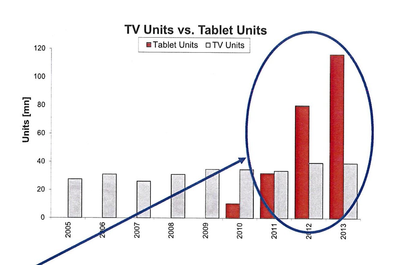 The rise of new advertising models from Google and Facebook at the expense of traditional mediums like newspapers, magazines and the radio continues. As the graph below shows (ISI Group), tablet unit sales exceeded television sales for the first time in 2012. This may be a reason traditional media companies are in the process of consolidating. Not only are new media companies taking an increased share of the advertising pie, but they are also starting to produce their own content and deliver it via methods increasingly popular to future generations. While shifts in Fed policy and interest rates may cause a valuation reset for high growth stocks in the short run, it is doubtful that it will derail the long run earnings trajectory occurring in a whole host of industries affected by the dawn of the internet, now thirty or so years young.